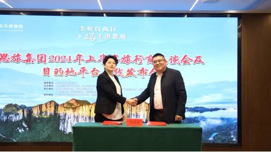 發(fā)布會上,恩旅集團營銷公司向與會領導和嘉賓介紹了恩施旅游目的地平臺建設背景、相關功能和操作模式等。巴楚國旅、歡硒俠國旅、想游國旅、華美達酒店等旅行商及酒店代表與恩旅集團營銷公司簽訂了平臺銷售合作協(xié)議。