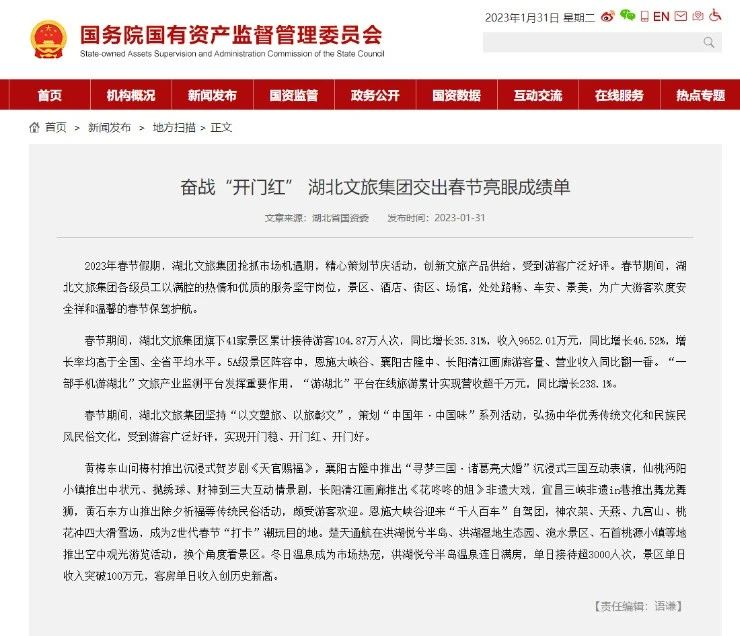 本周熱點(diǎn) 奮戰(zhàn)“開門紅” 湖北文旅集團(tuán)交出春節(jié)亮眼成績(jī)單。2023年春節(jié)假期,湖北文旅集團(tuán)搶抓市場(chǎng)機(jī)遇期,精心策劃節(jié)慶活動(dòng),創(chuàng)新文旅產(chǎn)品供給,受到游客廣泛好評(píng)。集團(tuán)旗下41家景區(qū)累計(jì)接待游客104.87萬人次,同比增長(zhǎng)35.31%,收入9652.01萬元,同比增長(zhǎng)46.52%,增長(zhǎng)率均高于全國(guó)、全省平均水平。5A級(jí)景區(qū)陣容中,恩施大峽谷、襄陽古隆中、長(zhǎng)陽清江畫廊游客量、營(yíng)業(yè)收入同比翻一番。“一部手機(jī)游湖北”文旅產(chǎn)業(yè)監(jiān)測(cè)平臺(tái)發(fā)揮重要作用,“游湖北”平臺(tái)在線旅游累計(jì)實(shí)現(xiàn)營(yíng)收超千萬元,同比增長(zhǎng)238.1%。堅(jiān)持“以文塑旅、以旅彰文”,策劃“中國(guó)年·中國(guó)味”系列活動(dòng),弘揚(yáng)中華優(yōu)秀傳統(tǒng)文化和民族民風(fēng)民俗文化,受到游客廣泛好評(píng),實(shí)現(xiàn)開門穩(wěn)、開門紅、開門好。 首破千萬大關(guān),數(shù)旅集團(tuán)經(jīng)營(yíng)新春“兔”飛猛進(jìn)。兔年春節(jié)假期,是疫情防控政策放開后首個(gè)長(zhǎng)假,旅游市場(chǎng)持續(xù)增長(zhǎng),全省游客出游熱情高漲,2023年春節(jié)期間,數(shù)旅集團(tuán)各項(xiàng)經(jīng)營(yíng)指標(biāo)提升明顯。從除夕到正月初六(1月21日至1月27日),數(shù)旅集團(tuán)“游湖北”平臺(tái)營(yíng)收首破千萬元大關(guān),達(dá)到1008.62萬元,同比增長(zhǎng)238.1%,服務(wù)游客過10萬人。執(zhí)行湖北文旅集團(tuán)“美好生活再出發(fā)”惠民優(yōu)惠券活動(dòng),發(fā)放消費(fèi)券8.27萬張約404萬元。湖北數(shù)字文旅集團(tuán)加快轉(zhuǎn)型發(fā)展、搶抓文旅政策機(jī)遇,營(yíng)收、利潤(rùn)等主要經(jīng)營(yíng)指標(biāo)創(chuàng)歷史性新高,內(nèi)生動(dòng)力持續(xù)增強(qiáng),科技實(shí)力顯著提升,平臺(tái)運(yùn)營(yíng)成效凸顯,品牌影響力不斷彰顯,各項(xiàng)工作取得新成效。 湖北數(shù)字文旅集團(tuán)當(dāng)選湖北省數(shù)字內(nèi)容服務(wù)行業(yè)協(xié)會(huì)副會(huì)長(zhǎng)單位。2月1日,在省直機(jī)關(guān)工委、湖北省民政廳單位指導(dǎo)下,湖北省數(shù)字內(nèi)容服務(wù)行業(yè)協(xié)會(huì)第一屆一次會(huì)員大會(huì)正式召開。會(huì)上,湖北數(shù)字文旅集團(tuán)作為發(fā)起單位之一當(dāng)選副會(huì)長(zhǎng)單位,集團(tuán)總經(jīng)理羅圓當(dāng)選協(xié)會(huì)副會(huì)長(zhǎng)。未來,湖北省數(shù)字內(nèi)容服務(wù)行業(yè)協(xié)會(huì)將順應(yīng)數(shù)字內(nèi)容創(chuàng)新發(fā)展趨勢(shì),抓住數(shù)字化轉(zhuǎn)型新機(jī)遇,堅(jiān)持創(chuàng)新賦能,有效整合高校智力資源、政府政策資源以及社會(huì)資本資源,搭建行業(yè)交流平臺(tái),建立高效溝通協(xié)調(diào)機(jī)制,營(yíng)造良好產(chǎn)業(yè)發(fā)展環(huán)境,推動(dòng)技術(shù)實(shí)業(yè)結(jié)合、產(chǎn)學(xué)研用融合、標(biāo)準(zhǔn)體系建設(shè)等,助力湖北數(shù)字內(nèi)容服務(wù)行業(yè)高質(zhì)量發(fā)展。 最新資訊 ● 重慶全力推進(jìn)巴蜀文化旅游走廊建設(shè)。近日,2023年重慶市文化和旅游工作會(huì)議召開,推進(jìn)建設(shè)“承千年文脈、鑄人文精神、樹時(shí)代新風(fēng)、強(qiáng)創(chuàng)新品質(zhì)”的文化強(qiáng)市和世界知名旅游目的地。據(jù)了解,未來重慶將實(shí)施培育世界級(jí)休閑旅游勝地行動(dòng)計(jì)劃,按照打造國(guó)際范、中國(guó)味、巴蜀韻的世界級(jí)休閑旅游勝地的建設(shè)定位,印發(fā)實(shí)施《重慶市貫徹落實(shí)〈巴蜀文化旅游走廊建設(shè)規(guī)劃〉實(shí)施方案》,進(jìn)一步做靚都市旅游名片,加快都市旅游設(shè)施建設(shè),提升巴蜀文化旅游走廊的國(guó)際認(rèn)可度、知名度、美譽(yù)度。 ● 金馬游樂擬開展親子樂園主題相關(guān)業(yè)務(wù)。廣東金馬游樂股份有限公司發(fā)布關(guān)于擬開展對(duì)外投資事宜的公告:擬以自有資金投資不少于人民幣5000萬元受讓中山市紫馬嶺公園親子樂園項(xiàng)目15年的經(jīng)營(yíng)權(quán),項(xiàng)目主要建設(shè)內(nèi)容為符合項(xiàng)目親子樂園主題的相關(guān)業(yè)務(wù)及項(xiàng)目設(shè)置的相關(guān)游藝游樂設(shè)備。據(jù)金馬游樂表示,本次對(duì)外投資事宜符合公司的總體發(fā)展戰(zhàn)略和未來發(fā)展需要。 ● 國(guó)內(nèi)首家小王子主題樂園正式動(dòng)工。近日,位于廣州黃埔區(qū)的中法創(chuàng)意永續(xù)農(nóng)業(yè)產(chǎn)業(yè)項(xiàng)目暨小王子主題樂園正式動(dòng)工。據(jù)了解,該項(xiàng)目融合法國(guó)浪漫元素和設(shè)計(jì)理念,以法國(guó)童話名著《小王子》故事性為基底,對(duì)標(biāo)法國(guó)小王子主題樂園,打造國(guó)內(nèi)首家、也是全球第二家小王子主題樂園,項(xiàng)目邀請(qǐng)迪士尼、環(huán)球影城的主設(shè)計(jì)團(tuán)隊(duì)共同主導(dǎo)創(chuàng)意設(shè)計(jì),從游樂設(shè)施、體驗(yàn)內(nèi)容、科技應(yīng)用、景觀環(huán)境等進(jìn)行全方位升級(jí),通過文化植入、價(jià)值再造,輸出黃埔文化IP,打造廣州首個(gè)