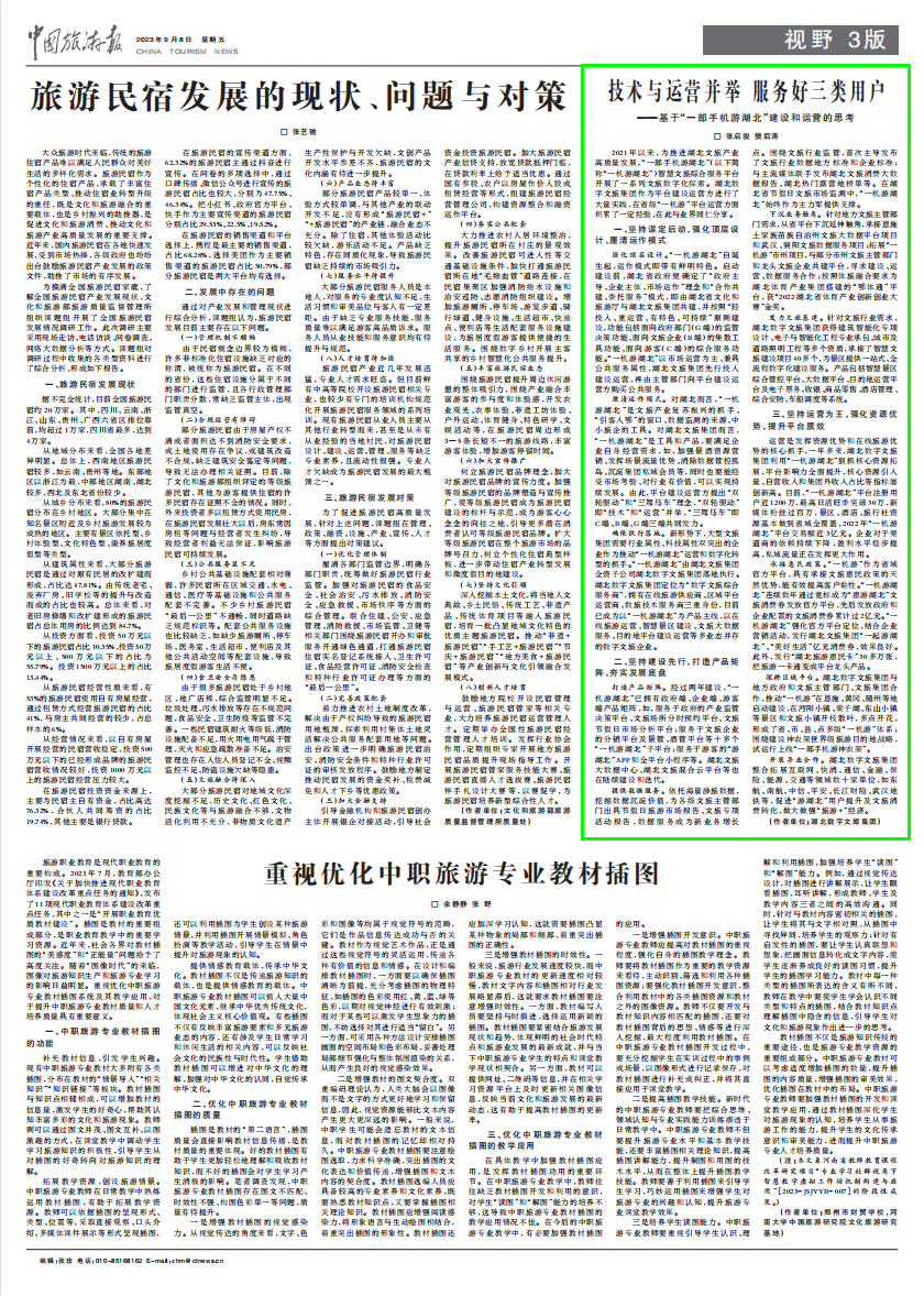編者按:2023年9月8日,《中國(guó)旅游報(bào)》以《技術(shù)與運(yùn)營(yíng)并舉 服務(wù)好三類用戶——基于“一部手機(jī)游湖北”建設(shè)和運(yùn)營(yíng)的思考》為題,刊發(fā)了湖北數(shù)字文旅集團(tuán)署名文章,現(xiàn)將相關(guān)內(nèi)容轉(zhuǎn)載如下。 □ 張啟駿 樊后濤 2021年以來,為推進(jìn)湖北文旅產(chǎn)業(yè)高質(zhì)量發(fā)展,“一部手機(jī)游湖北”(以下簡(jiǎn)稱“一機(jī)游湖北”)智慧文旅綜合服務(wù)平臺(tái)開展了一系列文旅數(shù)字化探索。湖北數(shù)字文旅集團(tuán)作為平臺(tái)建設(shè)運(yùn)營(yíng)方進(jìn)行了大量實(shí)踐,在省級(jí)“一機(jī)游”平臺(tái)運(yùn)營(yíng)方面積累了一定經(jīng)驗(yàn),在此與業(yè)界同仁分享。 一、堅(jiān)持謀定后動(dòng),強(qiáng)化頂層設(shè)計(jì),厘清運(yùn)作模式 強(qiáng)化頂層設(shè)計(jì)。“一機(jī)游湖北”自誕生起,運(yùn)作模式即帶有鮮明特色。啟動(dòng)建設(shè)前,湖北省政府便確定了“政府主導(dǎo)、企業(yè)主體、市場(chǎng)運(yùn)作”理念和“合作共建、委托服務(wù)”模式,即由湖北省文化和旅游廳與湖北文旅集團(tuán)共建,并按照“輕投入、重運(yùn)營(yíng)、有特色、可持續(xù)”原則建設(shè),功能包括面向政府部門(G端)的監(jiān)管決策功能、面向文旅企業(yè)(B端)的集散工具功能、面向游客(C端)的綜合服務(wù)功能。“一機(jī)游湖北”以市場(chǎng)運(yùn)營(yíng)為主、兼具公共服務(wù)屬性,湖北文旅集團(tuán)先行投入建設(shè)運(yùn)營(yíng),再由主管部門向平臺(tái)建設(shè)運(yùn)營(yíng)方購(gòu)買公共服務(wù)。 厘清運(yùn)作模式。對(duì)湖北而言,“一機(jī)游湖北”是文旅產(chǎn)業(yè)復(fù)蘇振興的抓手、“引客入鄂”的窗口、數(shù)據(jù)監(jiān)測(cè)的來源、中小旅企的工具。對(duì)湖北文旅集團(tuán)而言,“一機(jī)游湖北”是工具和產(chǎn)品,要滿足企業(yè)自身經(jīng)營(yíng)需求,如,加強(qiáng)景酒資源營(yíng)銷、發(fā)揮場(chǎng)景流量?jī)?yōu)勢(shì)、消除數(shù)據(jù)管控孤島、沉淀集團(tuán)私域會(huì)員等,同時(shí)也要能經(jīng)受市場(chǎng)考驗(yàn)、對(duì)行業(yè)有價(jià)值,可以實(shí)現(xiàn)持續(xù)發(fā)展。由此,平臺(tái)建設(shè)運(yùn)營(yíng)方提出“雙輪驅(qū)動(dòng)”和“三駕馬車”理念,“雙輪驅(qū)動(dòng)”即“技術(shù)”和“運(yùn)營(yíng)”并舉,“三駕馬車”即C端、B端、G端三端共同發(fā)力。 確保執(zhí)行落地。新形勢(shì)下,大型文旅集團(tuán)需要行業(yè)屬性、科技屬性雙突出的企業(yè)作為推動(dòng)“一機(jī)游湖北”運(yùn)營(yíng)和數(shù)字化轉(zhuǎn)型的抓手。“一機(jī)游湖北”由湖北文旅集團(tuán)全資子公司湖北數(shù)字文旅集團(tuán)落地執(zhí)行。湖北數(shù)字文旅集團(tuán)定位為“數(shù)字文旅綜合服務(wù)商”,擁有在線旅游供應(yīng)商、區(qū)域平臺(tái)運(yùn)營(yíng)商、數(shù)旅技術(shù)服務(wù)商三重身份,目前已成為以“一機(jī)游湖北”為產(chǎn)品主線,以在線旅游運(yùn)營(yíng)、智慧景區(qū)建設(shè)、文旅大數(shù)據(jù)服務(wù)、目的地平臺(tái)建設(shè)運(yùn)營(yíng)等多業(yè)態(tài)并存的數(shù)字文旅企業(yè)。 二、堅(jiān)持建設(shè)先行,打造產(chǎn)品矩陣,夯實(shí)發(fā)展底盤 打造產(chǎn)品矩陣。經(jīng)過兩年建設(shè),“一機(jī)游湖北”已擁有政府端、企業(yè)端、游客端產(chǎn)品矩陣,如,服務(wù)于政府的產(chǎn)業(yè)監(jiān)管決策平臺(tái)、文旅場(chǎng)所分時(shí)預(yù)約平臺(tái)、文旅節(jié)假日市場(chǎng)分析平臺(tái);服務(wù)于文旅企業(yè)的分銷平臺(tái)及景管、酒管平臺(tái)等十多個(gè)“一機(jī)游湖北”子平臺(tái);服務(wù)于游客的“游湖北”APP和全平臺(tái)小程序等。湖北文旅大數(shù)據(jù)中心、湖北文旅混合云平臺(tái)等也在陸續(xù)建設(shè)和迭代。 提供數(shù)據(jù)服務(wù)。依托海量涉旅數(shù)據(jù),挖掘數(shù)據(jù)沉淀價(jià)值,為各級(jí)文旅主管部門出具節(jié)假日旅游市場(chǎng)報(bào)告、文旅專項(xiàng)活動(dòng)報(bào)告,數(shù)據(jù)服務(wù)成為新業(yè)務(wù)增長(zhǎng)點(diǎn)。圍繞文旅行業(yè)監(jiān)管,首次主導(dǎo)發(fā)布了文旅行業(yè)數(shù)據(jù)地方標(biāo)準(zhǔn)和企業(yè)標(biāo)準(zhǔn);與主流媒體聯(lián)手發(fā)布湖北文旅消費(fèi)大數(shù)據(jù)報(bào)告、湖北熱門露營(yíng)地榜單等。在湖北省節(jié)假日文旅市場(chǎng)監(jiān)測(cè)中,“一機(jī)游湖北”始終作為主力軍提供支撐。 下沉業(yè)務(wù)觸角。針對(duì)地方文旅主管部門需求,從省平臺(tái)下沉延伸觸角,承接恩施土家族苗族自治州文旅大數(shù)據(jù)平臺(tái)項(xiàng)目和武漢、襄陽文旅數(shù)據(jù)服務(wù)項(xiàng)目;拓展“一機(jī)游”市州項(xiàng)目,與部分市州文旅主管部門和龍頭文旅企業(yè)共建平臺(tái),尋求建設(shè)、運(yùn)營(yíng)、數(shù)據(jù)服務(wù)合作;按照體旅融合要求為湖北體育產(chǎn)業(yè)集團(tuán)搭建的“鄂體通”平臺(tái),獲“2022湖北省體育產(chǎn)業(yè)創(chuàng)新創(chuàng)業(yè)大賽”金獎(jiǎng)。 發(fā)力文