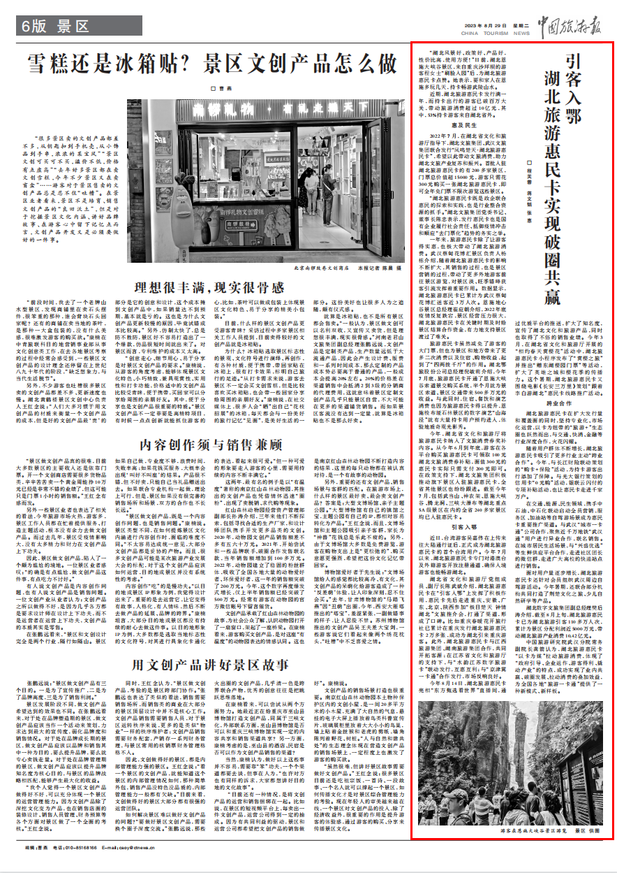 編者按:日前,《中國(guó)旅游報(bào)》以《引客入鄂 湖北旅游惠民卡實(shí)現(xiàn)破圈共贏》為題,聚焦湖北旅游惠民卡“引客入鄂”、撬動(dòng)產(chǎn)業(yè)以及創(chuàng)新運(yùn)營(yíng)的相關(guān)成效,現(xiàn)將相關(guān)內(nèi)容轉(zhuǎn)載如下。 □ 程芙蓉 蔣文韜 張惠 “湖北風(fēng)景好、政策好、產(chǎn)品好,性價(jià)比高,使用方便!”日前,湖北恩施大峽谷景區(qū),來自重慶沙坪壩的游客程女士“刷臉入園”后,為湖北旅游惠民卡點(diǎn)贊。她表示,要和家人在恩施多玩幾天,持卡暢游武陵山水。 近期,湖北旅游惠民卡發(fā)行滿一年,而持卡出行的游客已破百萬(wàn)大關(guān),帶動(dòng)旅游消費(fèi)超過10億元,其中,53%持卡游客來自湖北省外。 惠及民生 2022年7月,在湖北省文化和旅游廳指導(dǎo)下,湖北文旅集團(tuán)、武漢文旅集團(tuán)聯(lián)合發(fā)行“鳳鳴楚天·湖北旅游惠民卡”,希望以此帶動(dòng)文旅消費(fèi),助力湖北文旅產(chǎn)業(yè)復(fù)蘇和振興。首批入駐湖北旅游惠民卡的有200多家景區(qū),門票總價(jià)值超15000元,游客只需花300元購(gòu)買一張湖北旅游惠民卡,即可全年免門票不限次游覽這些景區(qū)。 “湖北旅游惠民卡既是政企聯(lián)合惠民的探索和實(shí)踐,也是行業(yè)整合資源的抓手。”湖北文旅集團(tuán)黨委書記、董事長(zhǎng)陳忠表示,發(fā)行惠民卡也是國(guó)有企業(yè)履行社會(huì)責(zé)任、抵御疫情沖擊和順應(yīng)“去門票化”趨勢(shì)的務(wù)實(shí)之舉。 一年來,旅游惠民卡除了讓游客得實(shí)惠,也極大帶動(dòng)了湖北旅游消費(fèi)。武漢蔡甸花博匯景區(qū)負(fù)責(zé)人楊棟介紹,隨著湖北旅游惠民卡的影響不斷擴(kuò)大,其銷售的過程,也是景區(qū)營(yíng)銷的過程,帶動(dòng)了更多外地游客前往景區(qū)游覽,對(duì)景區(qū)淡、旺季錯(cuò)峰獲客引流發(fā)揮著重要作用。數(shù)據(jù)顯示,湖北旅游惠民卡已累計(jì)為武漢蔡甸花博匯送客近3萬(wàn)人次。恩施地心谷景區(qū)總經(jīng)理崔應(yīng)朝介紹,2022年底疫情反復(fù)跌宕,景區(qū)經(jīng)營(yíng)壓力很大,湖北旅游惠民卡在關(guān)鍵時(shí)期及時(shí)給景區(qū)結(jié)算合作資金,有力地支持景區(qū)渡過了難關(guān)。 旅游惠民卡雖然減免了游客的大門票,但也為景區(qū)和地方帶來了更多二次消費(fèi)以及住宿、購(gòu)物收益,起到了“四兩撥千斤”的作用。湖北鄂旅股份公司總經(jīng)理倪敏莉介紹,今年7月底,旅游惠民卡開通了恩施大峽谷索道景交購(gòu)買系統(tǒng),半個(gè)月就為景區(qū)索道、景區(qū)交通帶來500多萬(wàn)元的收益。與此同時(shí),住宿、餐飲和演藝消費(fèi)也因?yàn)槁糜位菝窨ǖ靡蕴嵘?,恩施梭布埡石林景區(qū)的數(shù)字演藝“山海涇”就有大量持卡用戶預(yù)約進(jìn)入,體驗(yàn)地質(zhì)奇觀光影秀。 今年,湖北省文化和旅游廳將旅游惠民卡納入了文旅消費(fèi)券獎(jiǎng)補(bǔ)內(nèi)容。從今年6月到年底,游客在各平臺(tái)購(gòu)買旅游惠民卡可領(lǐng)取100元湖北文旅消費(fèi)券補(bǔ)貼,面值300元的惠民卡實(shí)際只需支付200元即可。在政策支持下,湖北文旅集團(tuán)積極推動(dòng)旗下景區(qū)入駐旅游惠民卡,全省其他景區(qū)也紛紛跟進(jìn)。截至今年7月,包括武當(dāng)山、神農(nóng)架、恩施大峽谷、騰龍洞、三峽大瀑布等湖北重點(diǎn)5A級(jí)景區(qū)在內(nèi)的全省240多家景區(qū)均已入駐惠民卡。 引客入鄂 近日,臺(tái)灣游客吳嘉偉在上傳來往大陸通行證后,正式成為湖北旅游惠民卡的首個(gè)臺(tái)灣用戶。今年7月以來,湖北旅游惠民卡專門對(duì)港澳臺(tái)及外籍游客開放注冊(cè)通道,確保入境游客也能暢游湖北。 湖北省文化和旅游廳黨組成員、副廳長(zhǎng)陳武斌介紹,湖北旅游惠民卡在“引客入鄂”上發(fā)揮了積極作用,惠民卡先后走進(jìn)重慶、安徽、廣東、北京、陜西參加“極目楚天 鐘情湖北”文旅推介會(huì),打通了渠道,形成了口碑。比如重慶春暖花開旅行社已累計(jì)在重慶發(fā)行湖北旅游惠民卡2萬(wàn)多張,成功為湖北引來重慶游客。此外,湖北旅游惠民卡與江西旅游集團(tuán)、湖南旅游集團(tuán)合作,共同開拓客源;在江蘇省文化和旅游廳的支持下,與“水韻江蘇數(shù)字旅游卡”聯(lián)動(dòng)發(fā)行,互惠互利;與“京津冀一卡通”合作發(fā)行,市場(chǎng)反響良好。 今年8月14日,湖北旅游惠民卡亮相“東方甄選看世界”直播間,通過優(yōu)質(zhì)平臺(tái)的推送,擴(kuò)大了知名度,宣傳了湖北文化和旅游產(chǎn)品,同時(shí)也取得了不俗的銷售業(yè)績(jī)。今年3月,在湖北省文化和旅游廳開展的“相約春天賞櫻花”活動(dòng)中,湖北旅游惠民卡小程序發(fā)布了“賞櫻之旅”并推出“贈(zèng)東湖櫻園門票”等活動(dòng),擴(kuò)大了英雄之城和櫻花季的傳播力。這個(gè)暑期,湖北旅游惠民卡又圍繞電影《長(zhǎng)安三萬(wàn)里》策劃“跟著李白游湖北”惠民卡線路推廣活動(dòng)。 跨業(yè)合作 湖北旅游惠民卡在擴(kuò)大發(fā)行量和覆蓋面的同時(shí),堅(jiān)持專業(yè)化、市場(chǎng)化運(yùn)營(yíng),以卡為紐帶的“旅游+”生態(tài)圈也躍然而出,與交通、快消、金融等行業(yè)深度合作,火花閃耀。 隨著用戶群體不斷增