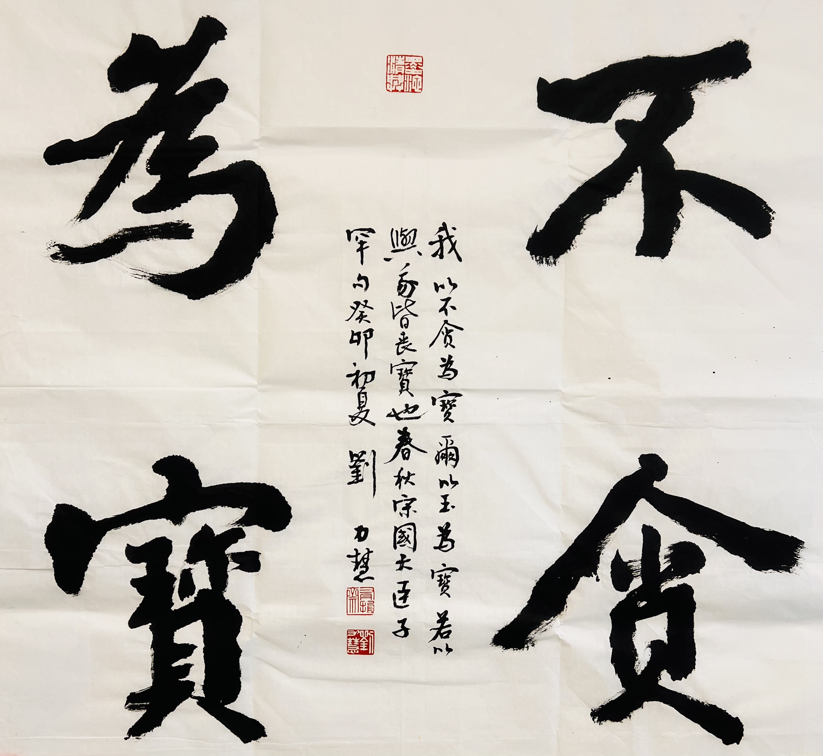 “不貪為寶”作品創(chuàng)意出自于《左傳·襄公十五年》中的廉潔故事,寓意不貪為可貴、崇高,廉潔奉公的高尚品質(zhì),作者為劉力慧。