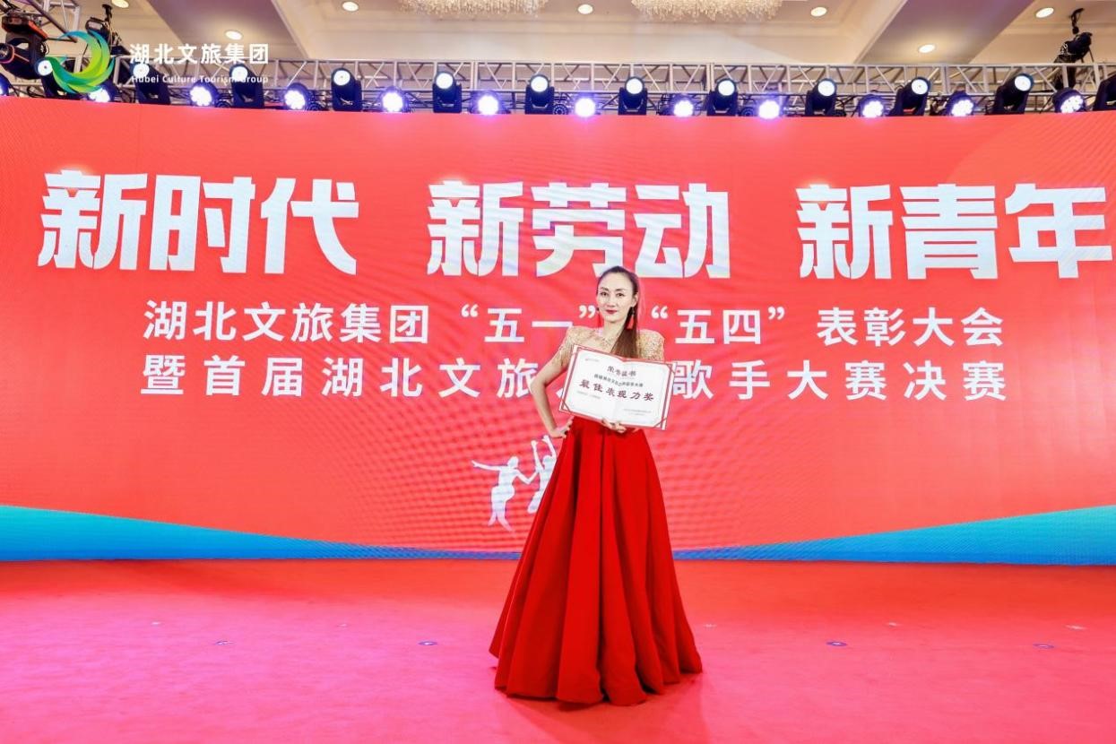 5月9日,湖北文旅集團(tuán)“五一”“五四”表彰大會暨“新時代 新勞動 新青年”首屆湖北文旅之聲歌手大賽決賽在洪山賓館舉行,數(shù)旅集團(tuán)2名共青團(tuán)、工會表彰受獎?wù)叩巧项I(lǐng)獎臺,歌手比賽中獲最佳表現(xiàn)力獎。