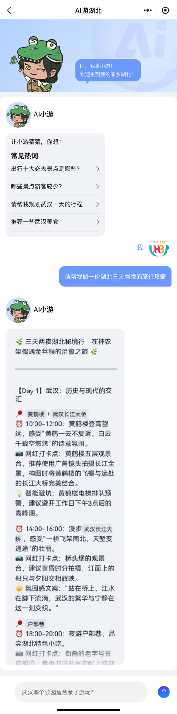 接入DeepSeek,湖北文旅集團(tuán)實(shí)現(xiàn)人工智能技術(shù)深度應(yīng)用重大突破。在湖北文旅集團(tuán)數(shù)智化戰(zhàn)略的驅(qū)動(dòng)下,數(shù)旅集團(tuán)深入推進(jìn)人工智能技術(shù)深度應(yīng)用項(xiàng)目。近日,“游湖北”平臺(tái)上線“AI游湖北”板塊,無(wú)論是行程規(guī)劃、景點(diǎn)介紹,還是實(shí)時(shí)天氣查詢、景區(qū)客流預(yù)警,都能輕松實(shí)現(xiàn)。自2024年第四季度項(xiàng)目啟動(dòng)以來(lái),技術(shù)團(tuán)隊(duì)巧妙借助國(guó)產(chǎn)大模型DeepSeek的強(qiáng)大效能,一舉斬獲兩項(xiàng)重大突破:搭建企業(yè)級(jí)知識(shí)庫(kù)系統(tǒng)、完成智能旅游行程助手設(shè)計(jì),為文旅行業(yè)的智能化變革注入了澎湃新動(dòng)能。未來(lái),數(shù)旅集團(tuán)將繼續(xù)深化人工智能技術(shù)的應(yīng)用,探索更多創(chuàng)新場(chǎng)景,推動(dòng)文旅行業(yè)的數(shù)字化轉(zhuǎn)型,為用戶創(chuàng)造更優(yōu)質(zhì)的智能化服務(wù)體驗(yàn)。