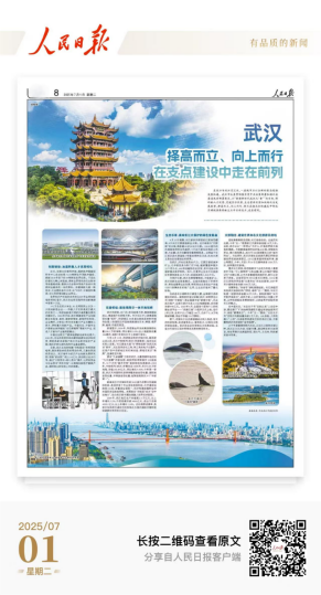 《人民日?qǐng)?bào)》整版報(bào)道武漢發(fā)展成就。2024年武漢GDP超2.1萬(wàn)億元,增長(zhǎng)5.2%,外貿(mào)規(guī)模突破4000億元。武漢加速轉(zhuǎn)化科教人才優(yōu)勢(shì),全球創(chuàng)新集群排名第13位,籌建產(chǎn)業(yè)創(chuàng)新聯(lián)合實(shí)驗(yàn)室。交通樞紐建設(shè)方面,陽(yáng)邏港集裝箱吞吐量238.1萬(wàn)標(biāo)準(zhǔn)箱,中歐班列發(fā)運(yùn)1008列,天河機(jī)場(chǎng)多項(xiàng)指標(biāo)居中部第一。生態(tài)治理成效顯著,長(zhǎng)江武漢段水質(zhì)連續(xù)5年Ⅱ類,“武碳江湖”用戶達(dá)160萬(wàn)。文旅融合方面,黃鶴樓、東湖等景區(qū)吸引大量游客,“光谷光子號(hào)”空軌成新地標(biāo)。武漢市擇高而立,在支點(diǎn)建設(shè)中走在前列。
