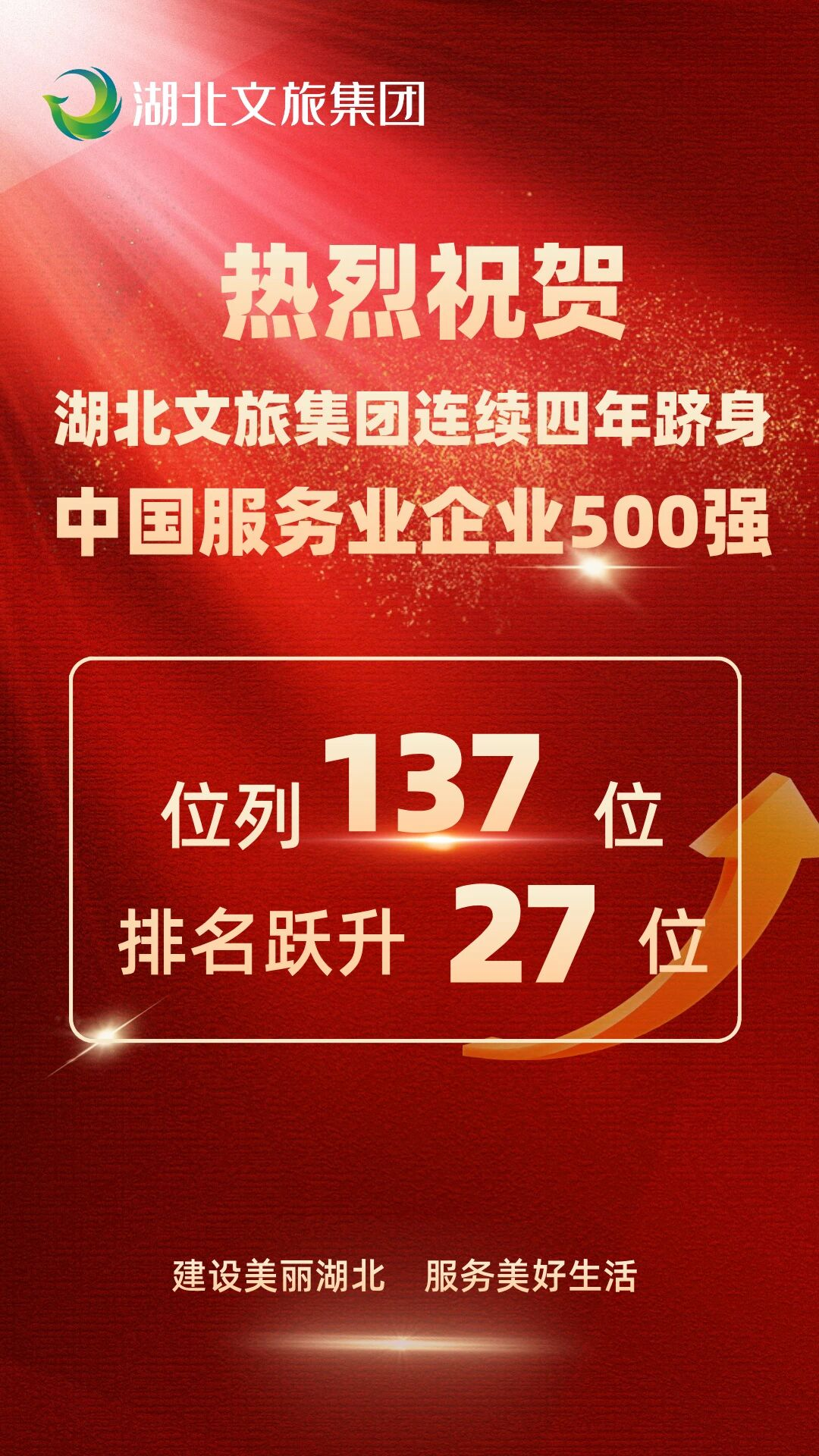 湖北文旅集團(tuán)再上榜中國(guó)服務(wù)業(yè)企業(yè)500強(qiáng),排名第137位。9月18日,中國(guó)企業(yè)聯(lián)合會(huì)、中國(guó)企業(yè)家協(xié)會(huì)在重慶發(fā)布“2025中國(guó)服務(wù)業(yè)企業(yè)500強(qiáng)”榜單。湖北文旅集團(tuán)憑借2024年604.80億元的營(yíng)業(yè)收入,再度躋身榜單,實(shí)現(xiàn)連續(xù)四年上榜,排名第137位,較2024年躍升27個(gè)位次。近年來(lái),集團(tuán)聚焦“四化轉(zhuǎn)型”,系統(tǒng)推進(jìn)“穩(wěn)增長(zhǎng)、調(diào)結(jié)構(gòu)、新產(chǎn)品、盤(pán)存量”四大行動(dòng),加速構(gòu)建主業(yè)突出、鏈條完整、效能卓越的文旅現(xiàn)代產(chǎn)業(yè)體系,為湖北建設(shè)世界知名文化旅游目的地貢獻(xiàn)力量。